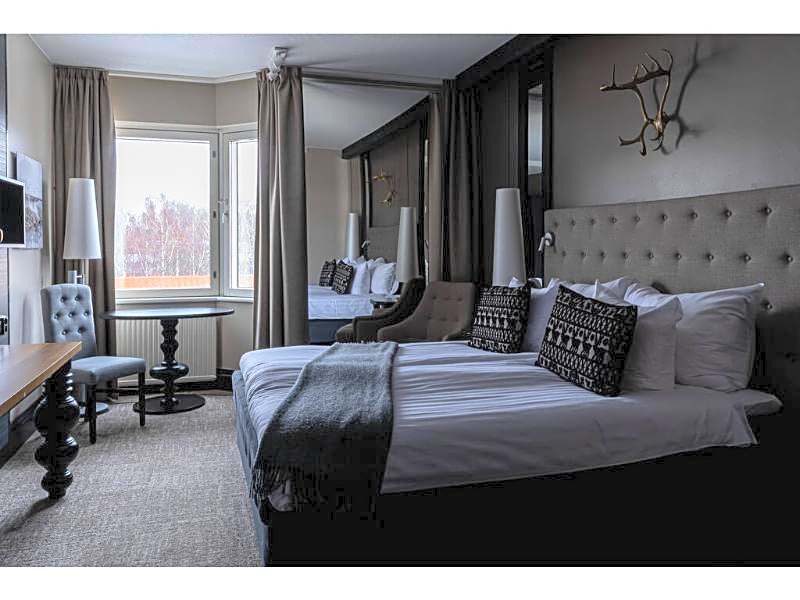 This large suite is decorated with a Lapland theme. It features a private sauna, a flat-screen TV with satellite channels, a mini-bar and a seating area with a sofa.